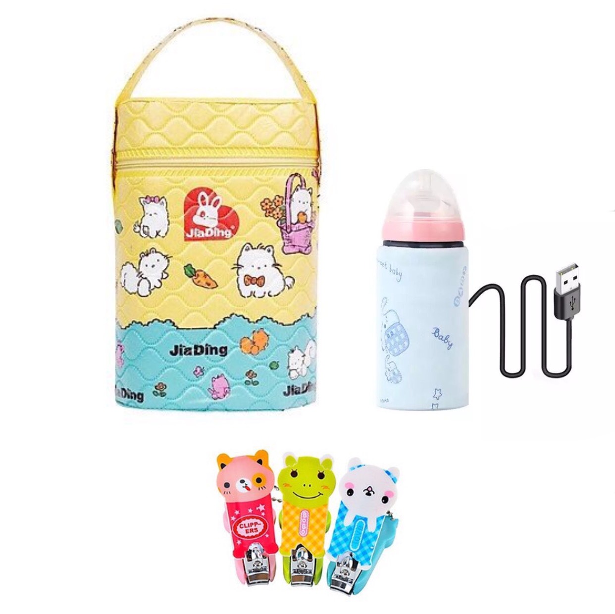 COMBO Bình Ủ Sữa Đôi Giữ Nhiệt + Tấm Ủ USB Hâm Nóng Sữa Tiện Lợi Cho Bé, Nhanh Chóng Cho Mẹ - Tặng 1 bấm móng tay cho bé (giao ngẫu nhiên )