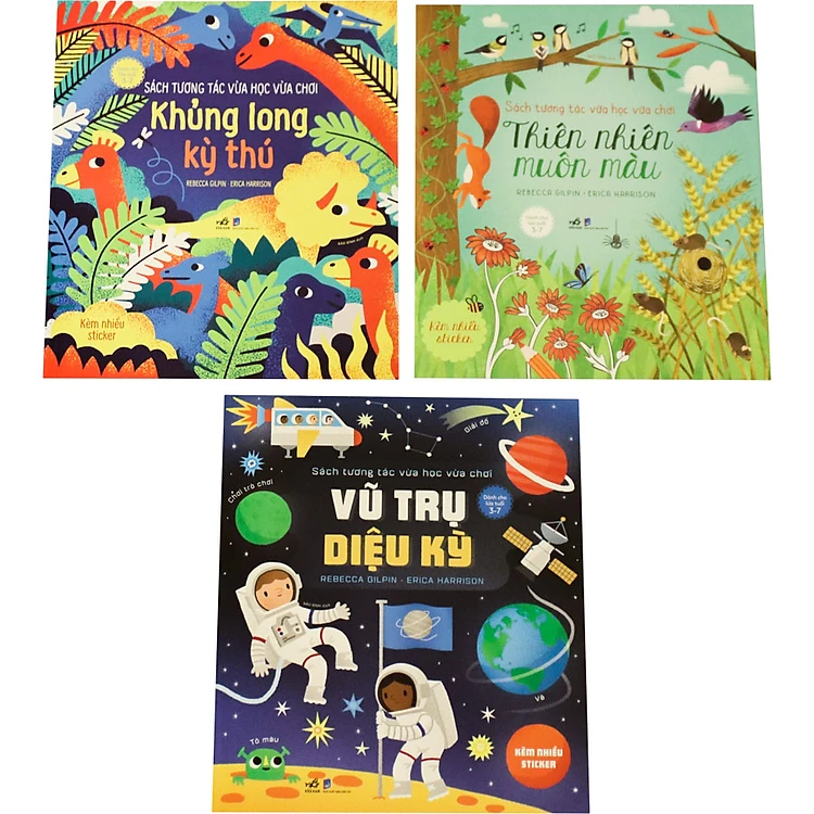 3 cuốn sách tương tác toàn diện này tập hợp nhiều trò chơi đa dạng, giúp em tăng cường khả năng sáng tạo, tư duy, làm toán, đọc chữ. Các em có thể gặp ở đây những trò chơi thú vị, như tập nối điểm theo số, tập tô màu theo hình có sẵn, vẽ theo chủ đề, dán sticker, làm phép tính, giải đố, tìm điểm khác biệt, Sách được thiết kế khoa học, các bài tập có nhiều tình huống gần gũi, dễ hiểu, được minh họa bằng những hình vẽ sinh động, màu sắc tươi tắn. Ở giữa cuốn sách có các trang sticker (có thể bóc ra dán lại nhiều lần mà không làm rách giấy), bố mẹ hướng dẫn con bóc ra để dán trong các thử thách dán sticker. Và cuối sách có đáp án cho các trò chơi đố vui nữa.