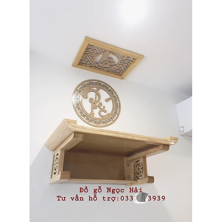 Combo bộ bàn thờ chung cư + ám khói + chữ phúc hay chữ bất kỳ bằng gỗ sồi
