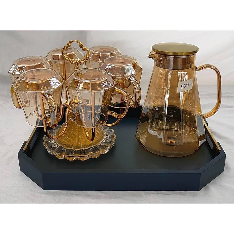 COMBO BỘ BÌNH CỐC THỦY TINH CHỊU NHIỆT VÂN SỌC KÈM ÚP CỐC INOX VÀ KHAY GỖ ( KHAY XANH GIAO NGẪU NHIÊN)
