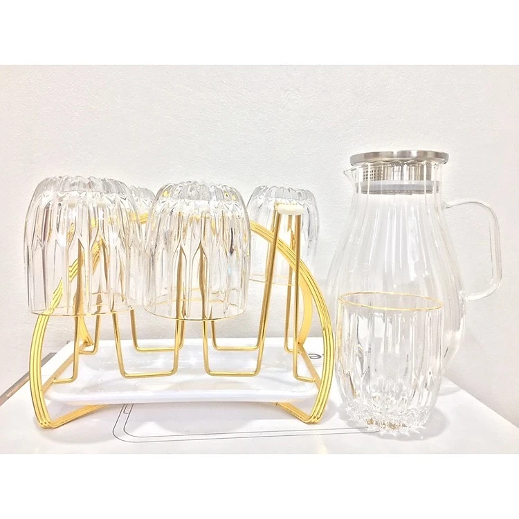 COMBO BỘ BÌNH ĐỰNG NƯỚC UỐNG THỦY TINH KÈM 6 CỐC VÀ GIÁ ÚP CỐC