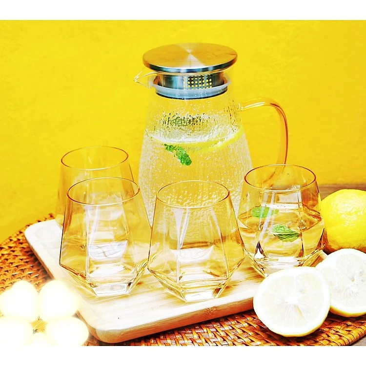Combo bộ bình nước uống và 6 cốc thủy tinh nhịu nhiệt cao cấp kèm khay gỗ tre