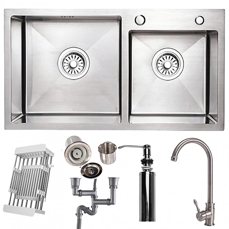 Combo bộ chậu rửa bát 2 hố RANOX và vòi rửa bát 2 đường nước RN46703