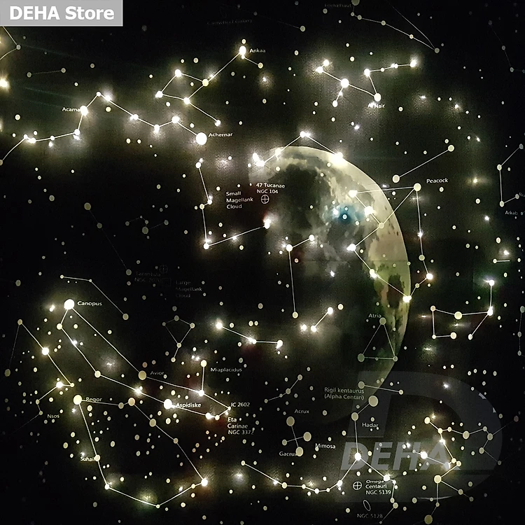 Combo bộ thảm tranh treo tường họa tiết dải ngân hà bằng vải mỏng và dây đèn led đom đóm trang trí (vải+ dây led+đinh)