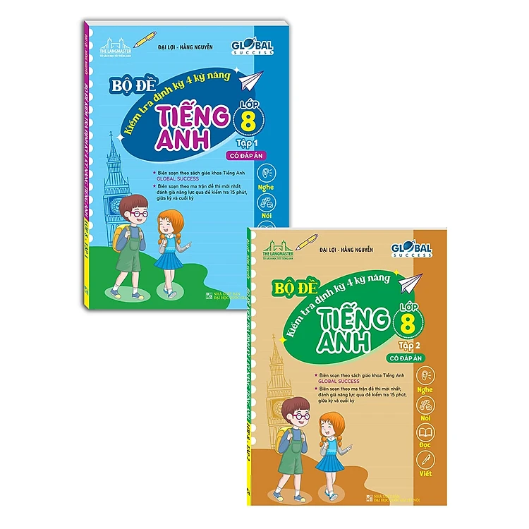 Combo Bộ Đề Kiểm Tra Định Kỳ 4 Kỹ Năng Tiếng Anh Lớp 8 (Có Đáp Án) (Bộ 2 Cuốn)_MT