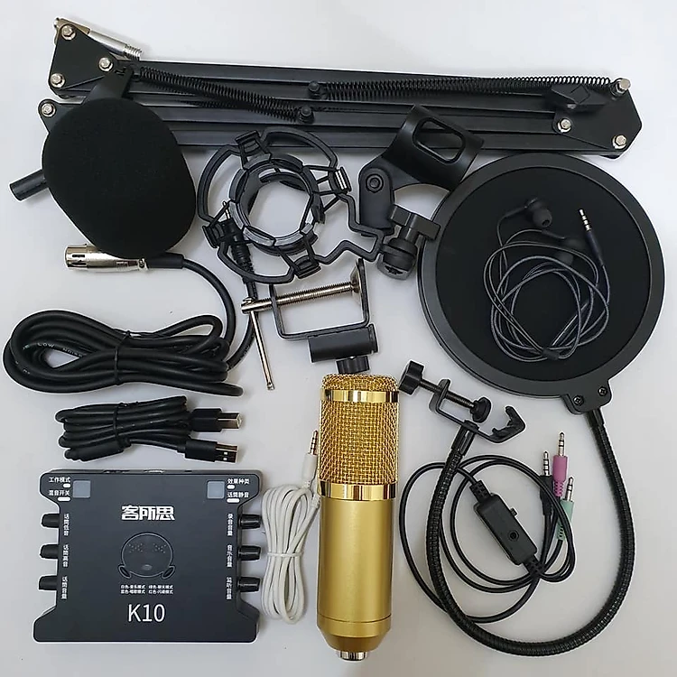 combo Bộ Míc Thu Âm Livestream Hát Karaoke Online Micro BM-900+ CARD K10+ dây live MA2+Tặng Tai nhét tai+ Chân kẹp+màng lọc