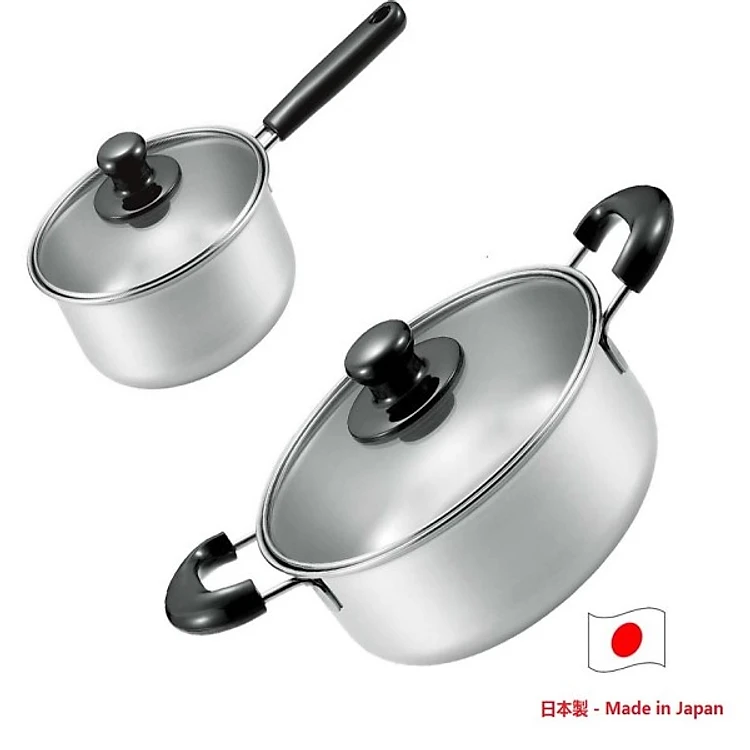 Combo bộ nồi inox cao cấp Tsubame 2.6L và 2.2L nắp kính cường lực - made in Japan