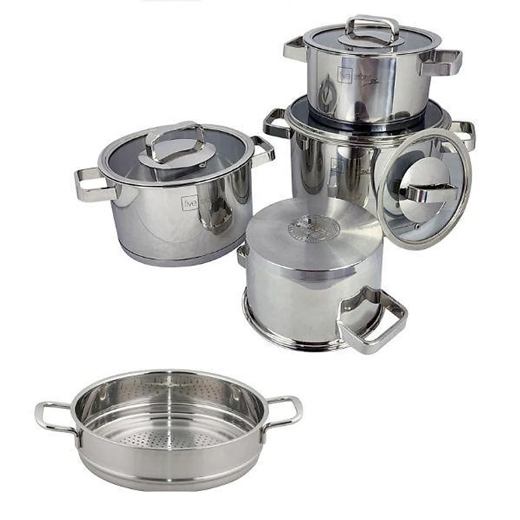 - Bộ sản phẩm bao gồm 4 nồi và 4 nắp inox 304, 1 thân xửng inox 430 như sau :