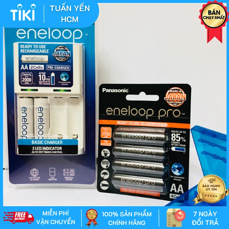 COMBO bộ sạc eneloop K-KJ51MCC20V và pin sạc eneloop pro vỉ 4 viên AA BK-3HCCE/4BV-Panasonic hàng chính hãng