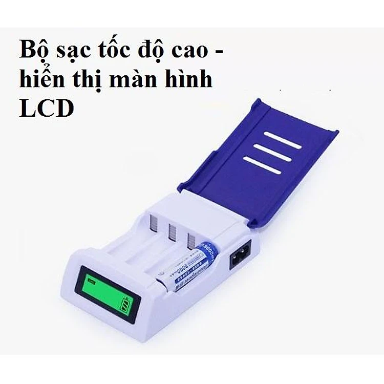 Combo Bộ Sạc nhanh Tự ngắt Tốc Độ Cao Màn Hình LCD Tặng 4 Pin AA 3000mAh Doublepow
