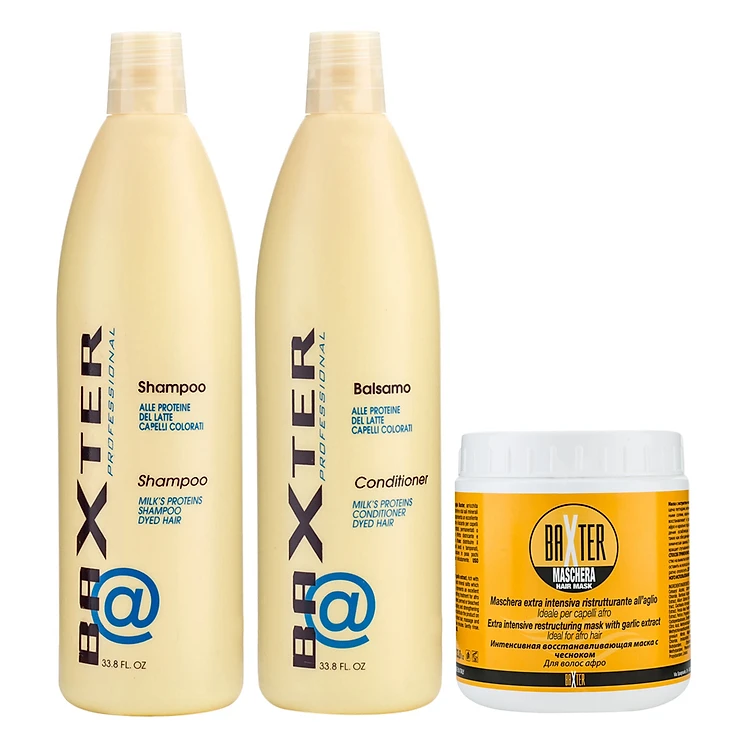 Combo Bộ Sản Phẩm Chăm Sóc Tóc Baxter: Dầu Gội Baxter (Vàng) - 1000ml + Dầu Xả Baxter (Vàng) - 1000ml + Mặt Nạ Vitamin Phục Hồi Tóc Hư Tổn Dành Cho Tóc Xoăn Baxter (1000ml) với công thức tiên tiến giúp nhẹ nhàng làm sạch nhưng bã nhờn và bụi bẩn trên tóc. Đồng thời có khả năng ngăn chặn tối đa các tác nhân làm bay màu tóc và giữ cho tóc xoăn luôn vào nếp nhờ đó mà màu tóc của bạn luôn bóng đẹp như mới. Ngoài ra, nhờ có hoạt chất dưỡng màu nên màu sắc của tóc được sáng bóng và giữ màu lâu hơn và giữ cho tóc xoăn luôn vào nếp. Combo bộ sản phẩm giúp bạn tiết kiệm được chi phí.