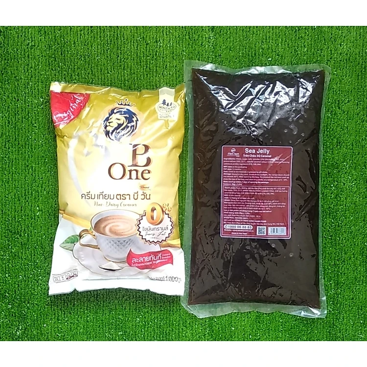 Combo Bộ Trà Sữa Huyền Thoại 1 Kg Bột Kem B-ONE Và 2 Kg Trân Châu 3Q Sea Jelly Caramel