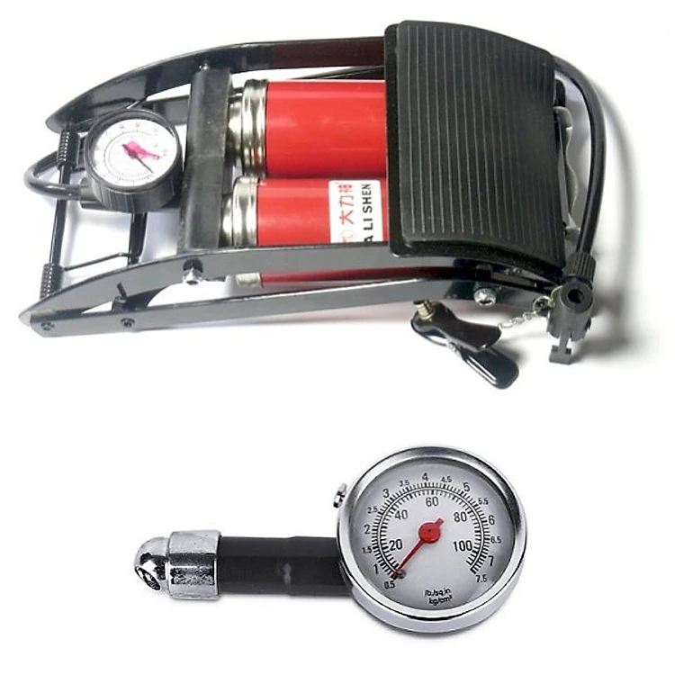 Combo Bơm hơi đạp chân 2 Pitton kèm Đồng hồ điện tử đo áp suất lốp xe chuyên dụng cho ô tô xe máy