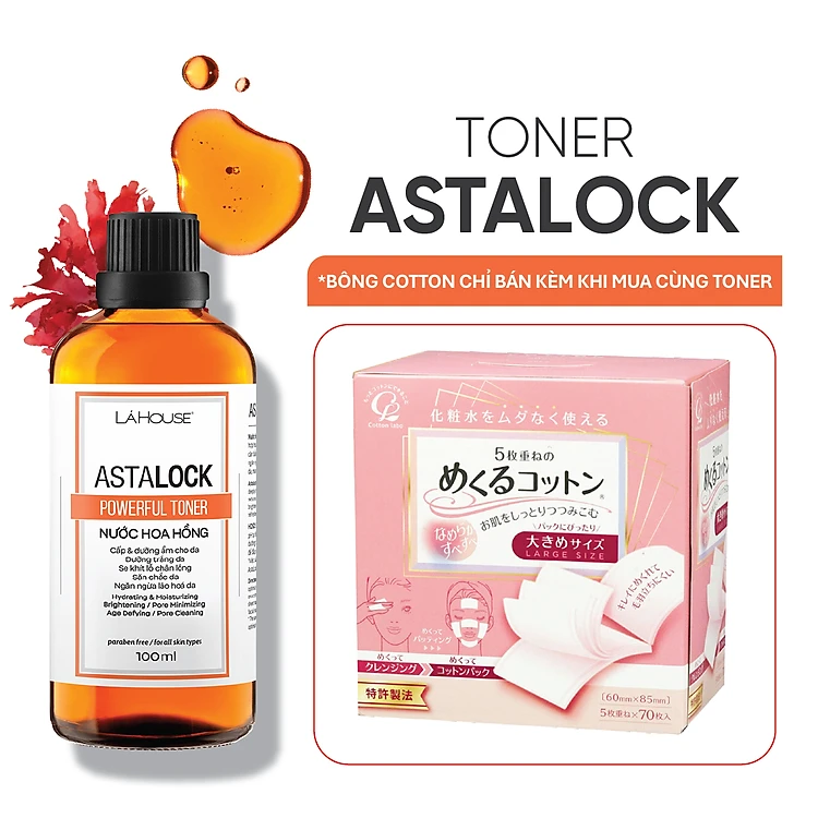 Bộ sản phẩm dưỡng da LÁ HOUSE gồm Toner Astalock 100ml,Bông tẩy trang
