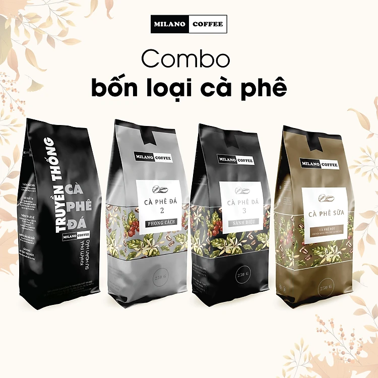 Combo cà phê bột 250gr Loại Truyền Thống - Phong Cách - Sành Điệu - Sữa Huyền thoại