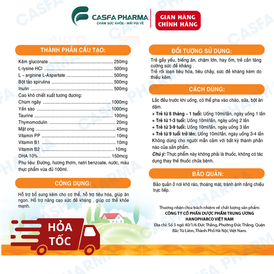 Dành cho sức khỏe xương và răng của bé, giúp tăng chiều cao và phát triển cơ thể mạnh mẽ. Hộp 20 gói * 10ml.