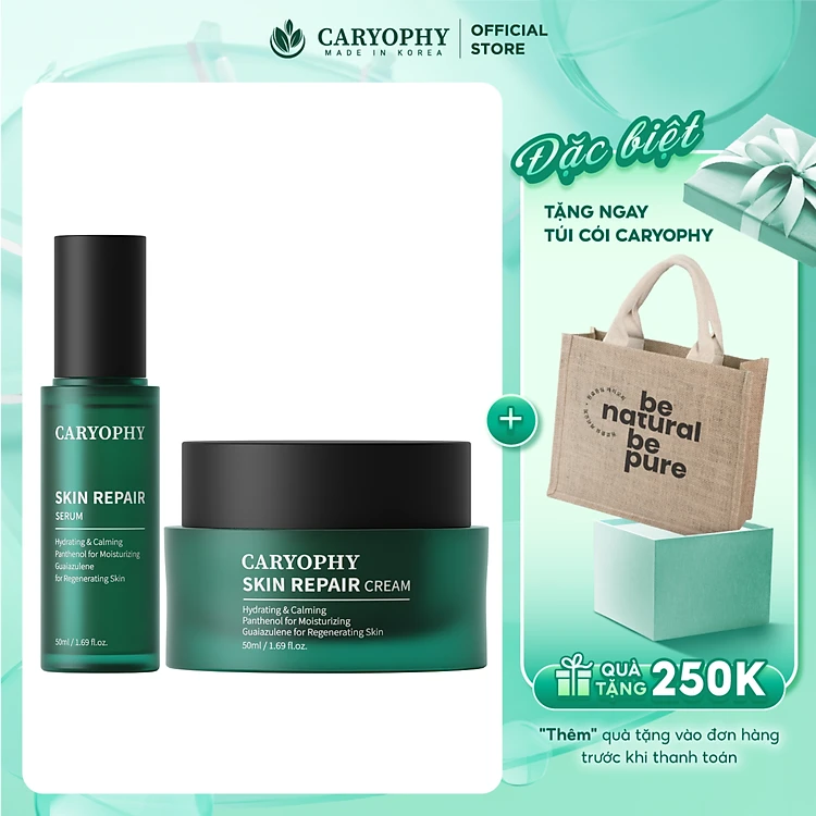 Combo cấp ẩm phục hồi chuyên sâu: Serum và Kem dưỡng Caryophy Skin Repair