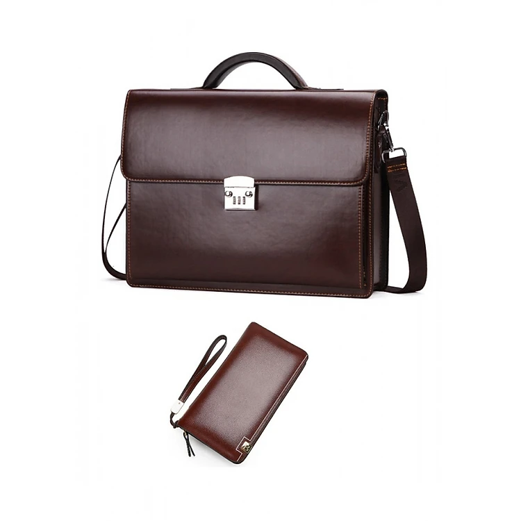 Combo Cặp Da Nam Công Sở Khóa Số Tặng Ví Cầm Tay KS03