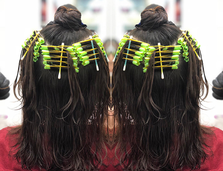 Chu Thanh Thủy: “Lần đầu tiên làm tóc tới 9 tiếng đồng hồ mà ko có gì để than phiền. Mấy bạn ai cũng làm kĩ dù tiệm rất đông vào dịp cuối tuần.”