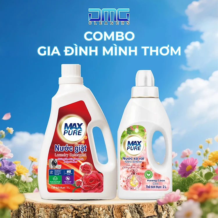 Combo Gia Đình Mình Thơm Maxpure Giặt 3L Hoa Hồng + Xả 2L Coco | Sạch Sâu, Lưu Hương Dài Lâu