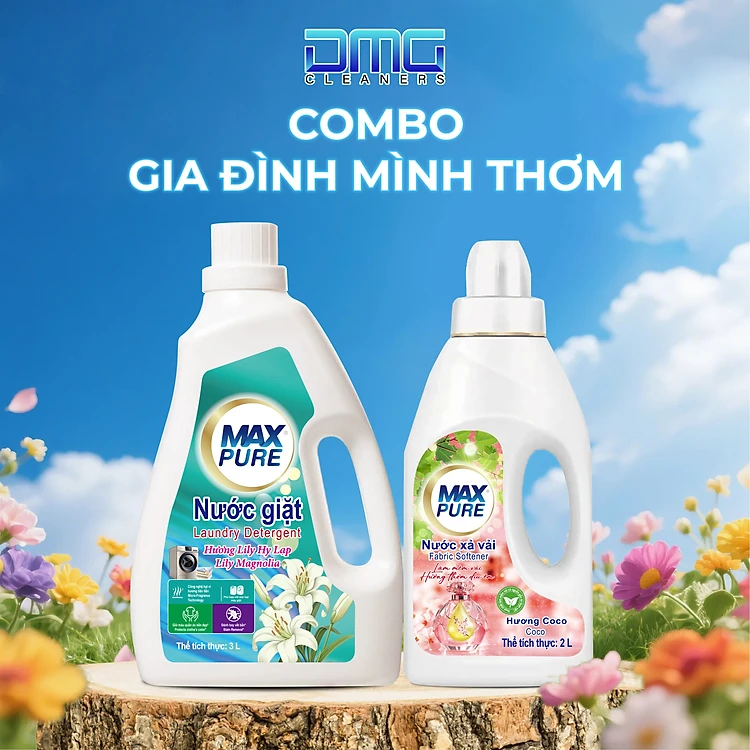 Combo Gia Đình Mình Thơm Maxpure Chai Giặt 3L Lily Hy Lạp + Chai Xả 2L Coco | Sạch Sâu, Mềm Thơm Dài Lâu