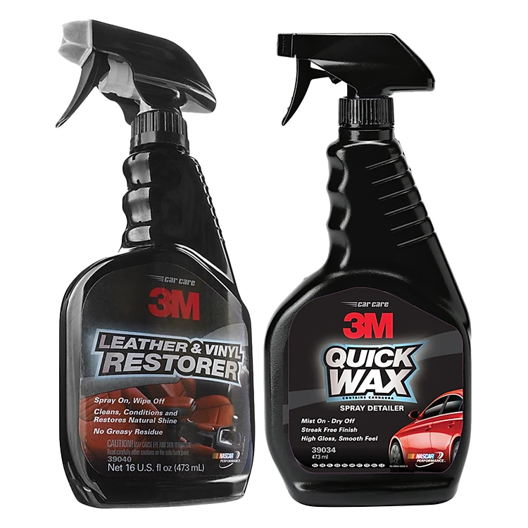 Combo Chai Xịt Đánh Bóng Nhanh (473ml) Và Chai Xịt Làm Sạch Da, Nhựa Cao Su 3M (473ml) + Tặng Xà Phòng Rửa Xe (400ml)