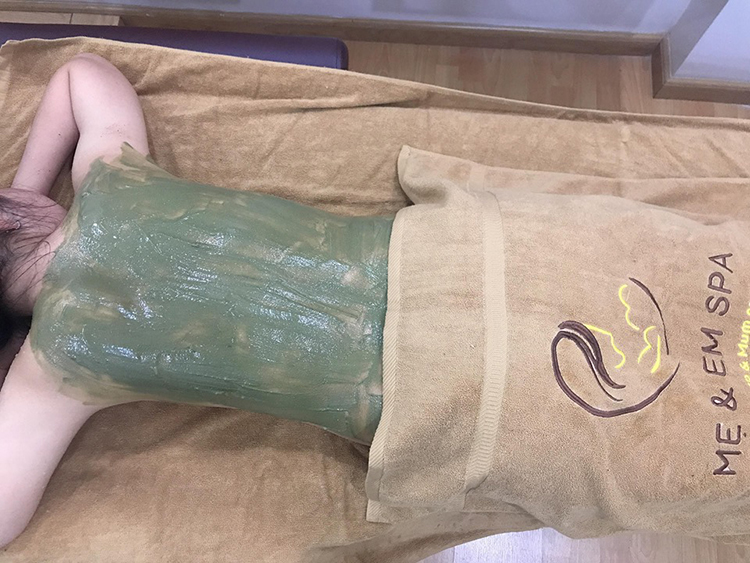 Bước 6: Thoa dưỡng da và kết hợp với massage lưng, tay và vai, giúp da hấp thụ dưỡng chất tốt nhất. Kết thúc liệu trình.