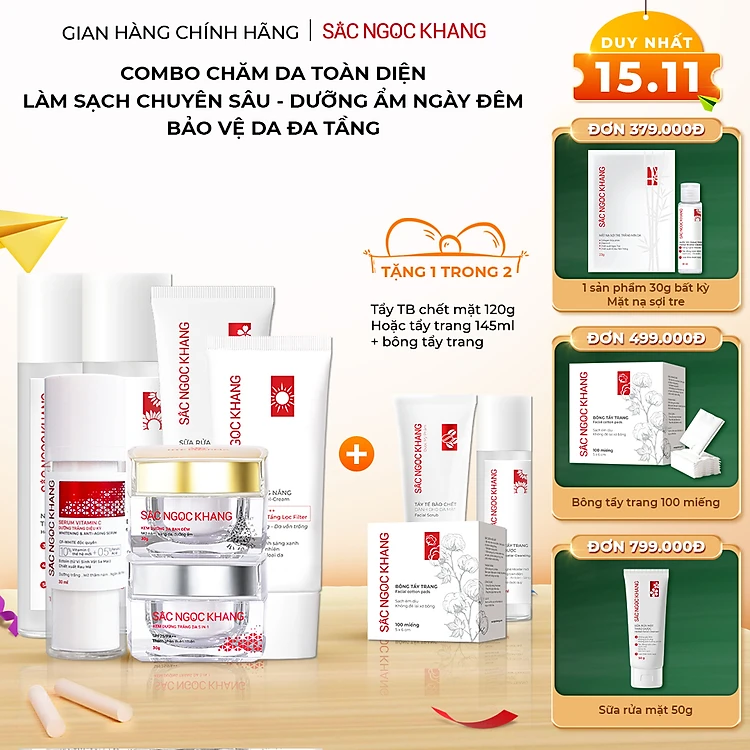 [COMBO 7 món] Chăm sóc da toàn diện dưỡng da cơ bản + kem dưỡng da ban ngày (30ml) + ban đêm (30g) + Serum dưỡng trắng diệu kì 30ml
