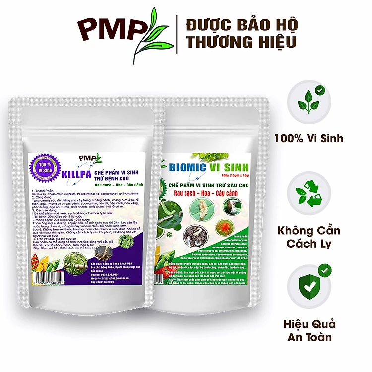 Combo chế phẩm vi sinh trừ bệnh, trừ sâu PMP cho rau sạch, hoa, cây cảnh (Biomic & Killpa)