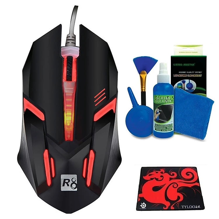 Combo Chuột Chuyên Game R8 1602 Đèn Led Đa màu + Bộ Vệ Sinh 4 món - HÀNG CHÍNH HÃNG [ TẶNG LÓT CHUỘT]