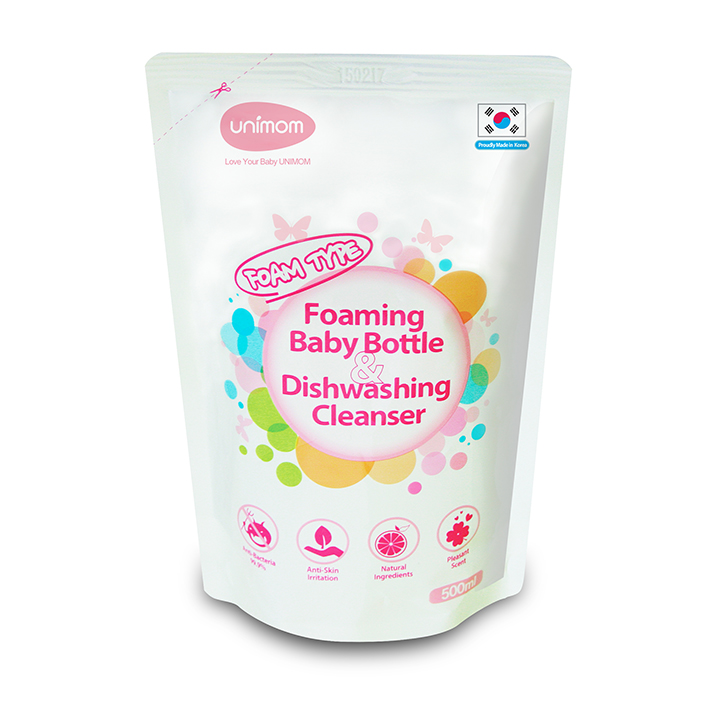 - Nước rửa bình sữa Unimom có thành phần chống vi khuẩn được Cục Thực phẩm và Dược phẩm Mỹ phê duyệt (FDA approved).