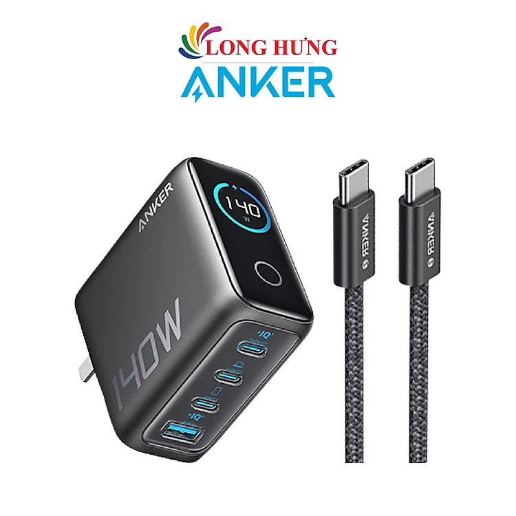 Combo cốc sạc Anker Zolo Fast Charging 1USB 3Type-C 140W + Cáp USB Type-C to Type-C PD 3.1 B2697 - Hàng chính hãng