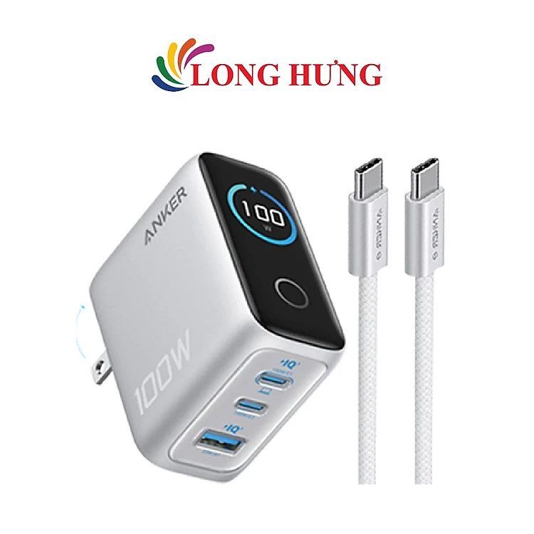 Combo cốc sạc Anker Innovative Dual-Mode 1USB 2Type-C 100W + Cáp USB Type-C to Type-C PD 3.0 B121B - Hàng chính hãng
