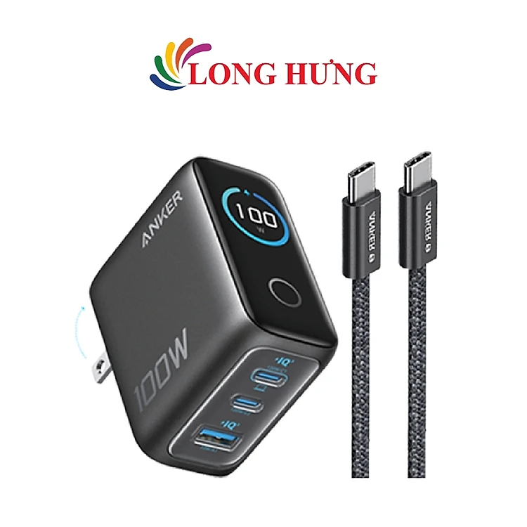 Combo cốc sạc Anker Innovative Dual-Mode 1USB 2Type-C 100W + Cáp USB Type-C to Type-C PD 3.0 B121B - Hàng chính hãng