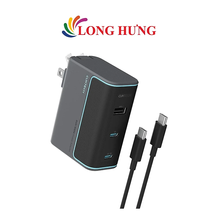 Combo cốc sạc Cuktech GaN 1USB 2Type-C 100W + Cáp USB Type-C to Type-C AD1003 - Hàng chính hãng