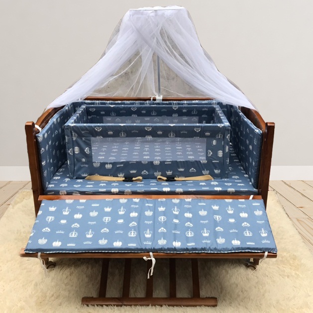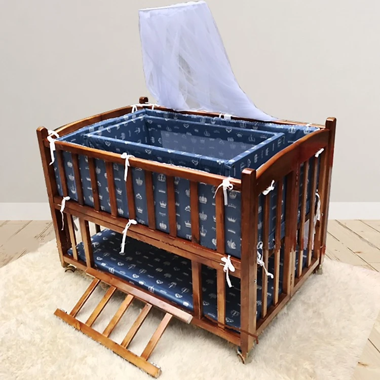 - Ga vải bọc đệm, quây cũi đều được làm từ chất vải thô lua, mền mịn và thấm hút mồ hôi, an toàn cho bé khi tiếp xúc