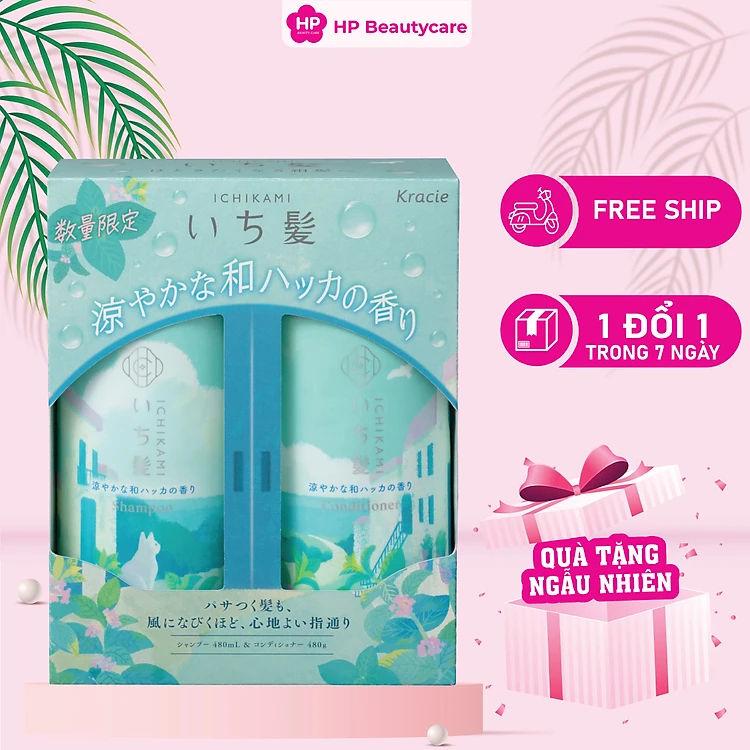 Combo Dầu Gội Và Dầu Xả Kracie Ichikami Dưỡng Tóc Chắc Khoẻ Hương Bạc Hà (480ML)