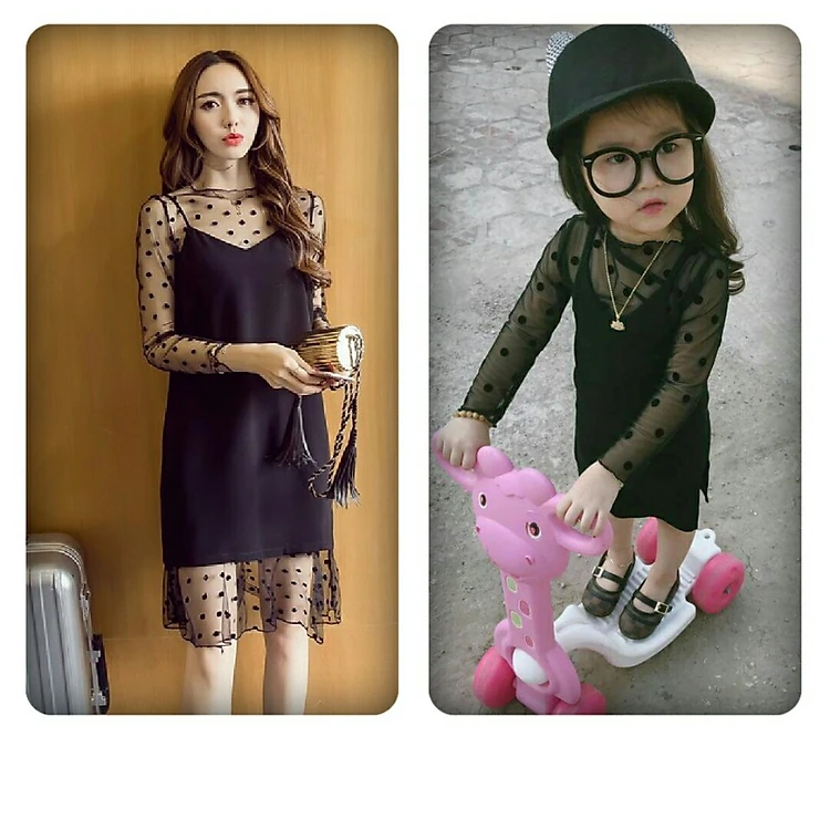Đầm mẹ bé ren lưới chấm bi 2 lớp , set rời