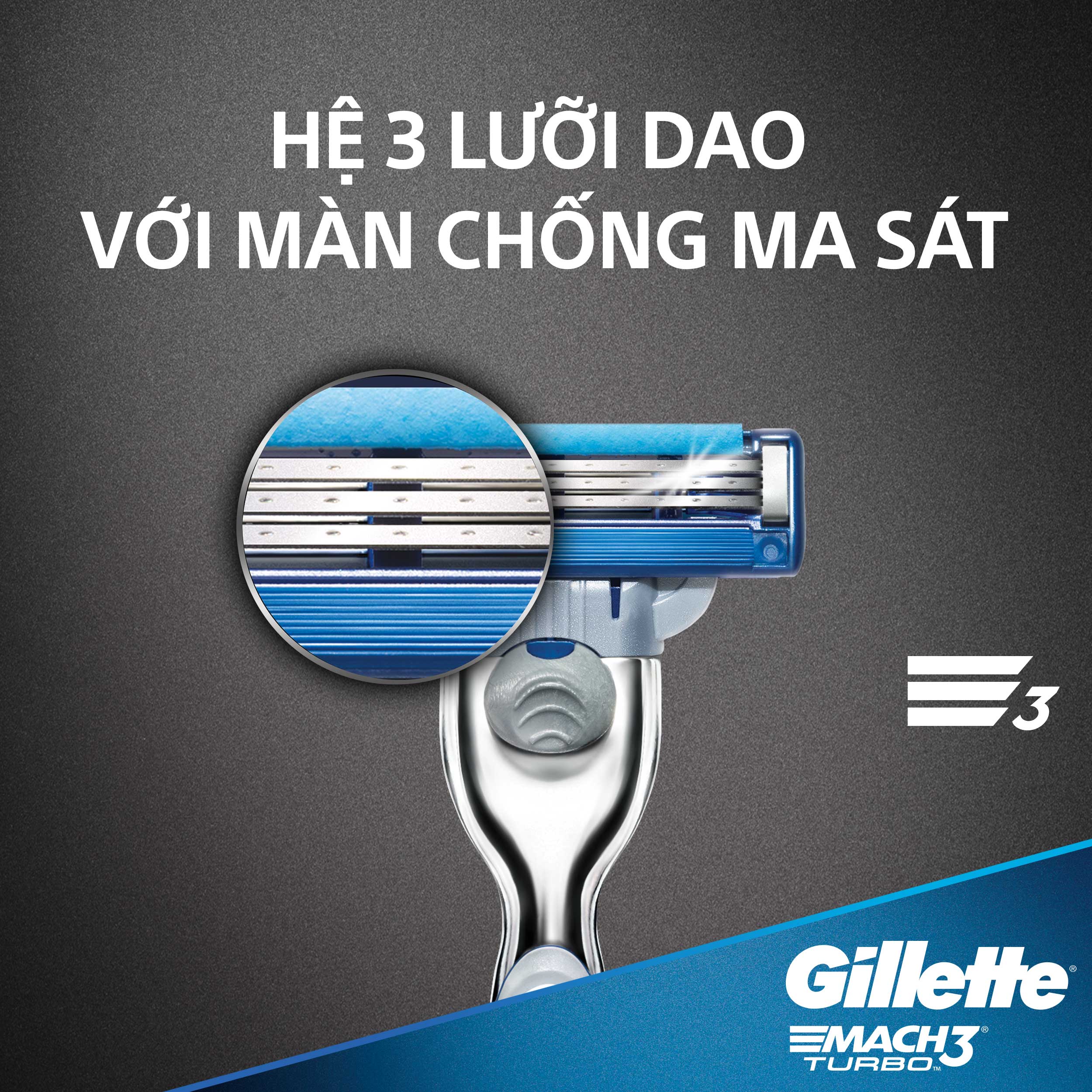 - Gillette Mach3 Turbo có tay cầm vừa vặn và lớp nhựa chống trơn trượt bao quanh, cho bạn thao tác linh hoạt ngay cả trong điều kiện ẩm ướt.