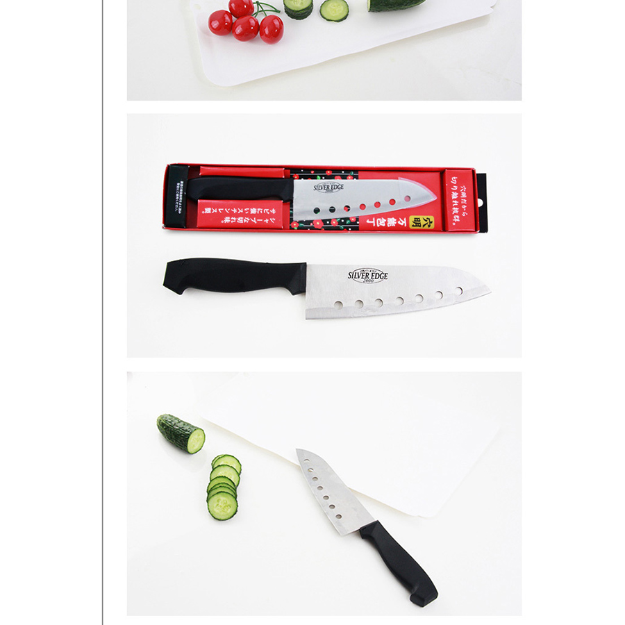 Lưỡi dao còn có thiết kế các lỗ tròn độc đáo trên lưỡi, giúp giải thoát những bóng khí có trong bánh trái, hoa quả.