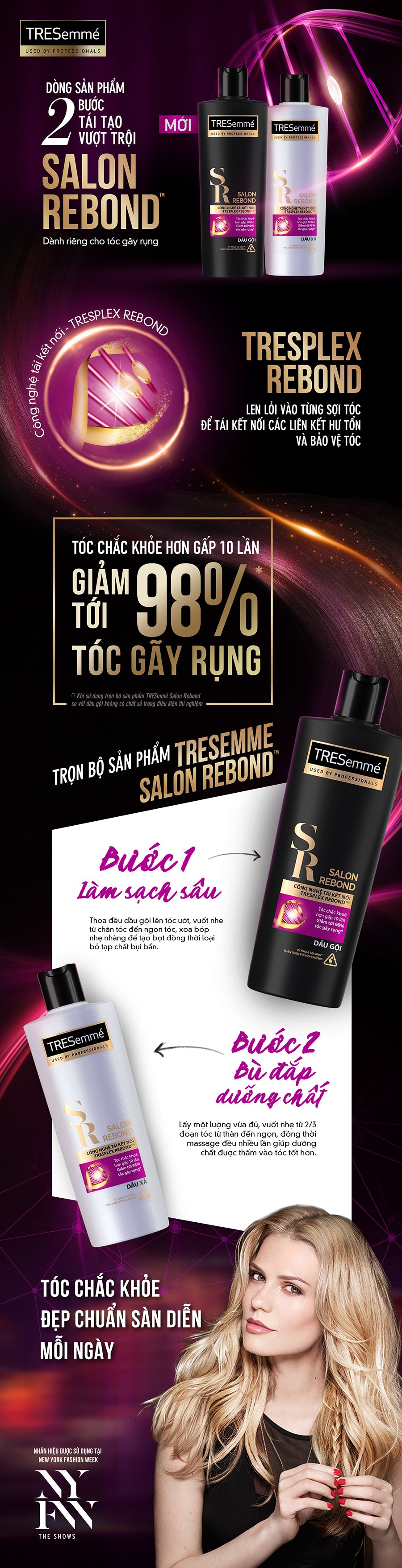 - Công nghệ TRESplex Rebond™ giúp đưa các dưỡng chất, bao gồm đường và các axit, thấm sâu vào bên trong sợi tóc để củng cố cấu trúc protein, nhằm phục hồi hư tổn