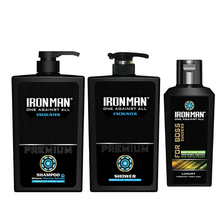 Dầu gội hương nước hoa nam + Sữa tắm dành cho da nhờn mụn Ironman Encounter 650g + Dung dịch vệ sinh nam tinh chất thảo dược Ironman for Boss 120g