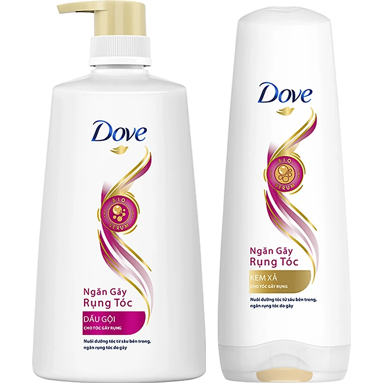 - Combo Gội 640gr + Xả 320gr Dove Ngăn Gãy Rụng Tóc - Dầu gội Dove Ngăn Gãy Rụng Tóc MỚI với Bio-Serum kết tinh từ Dầu Hạt Hướng Dương và Chiết Xuất Lá Trà Xanh, thấm đều và nuôi dưỡng từng sợi tóc từ bên trong, giúp tóc mềm mượt dễ chải, giảm xơ rối ngay từ khi tóc ướt, ngăn gãy rụng vượt trội (so với dầu gội không chứa chất xả).
