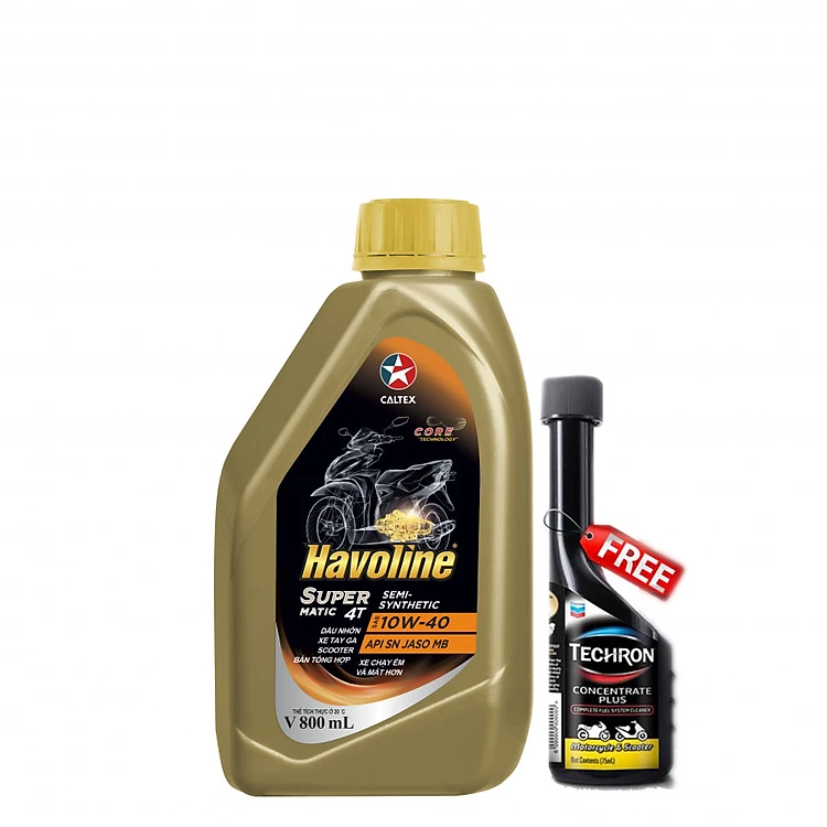 Combo dầu nhớt bán tổng hợp xe tay ga Caltex Havoline SuperMatic 4T Semi-Synthetic 10W40-0,8L tặng dung dịch vệ sinh buồng đốt
