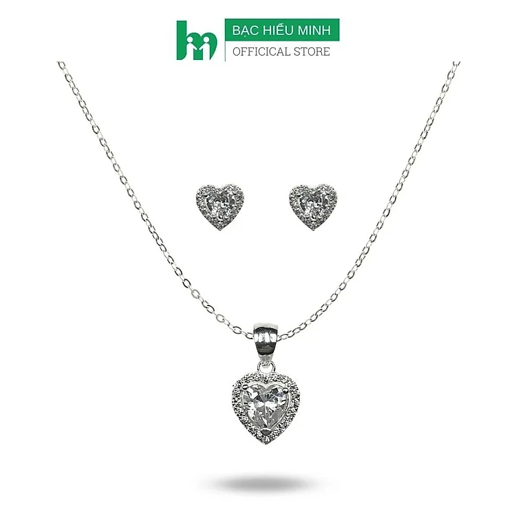 Combo Dây Chuyền Hoa Tai Nữ Bạc Ta Trái Tim Đính Đá BẠC HIỂU MINH BCB007