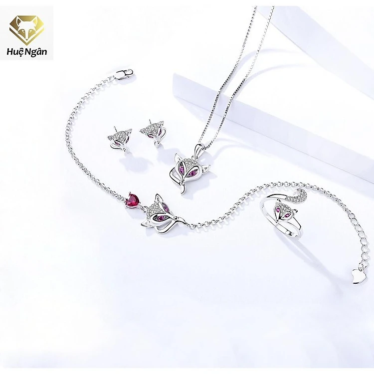 Combo dây chuyền khuyên tai,lắc tay và nhẫn bạc Ý 925 Huệ Ngân - Hồ ly may mắn PP1558-RYE140990-RR1617-RYB140127