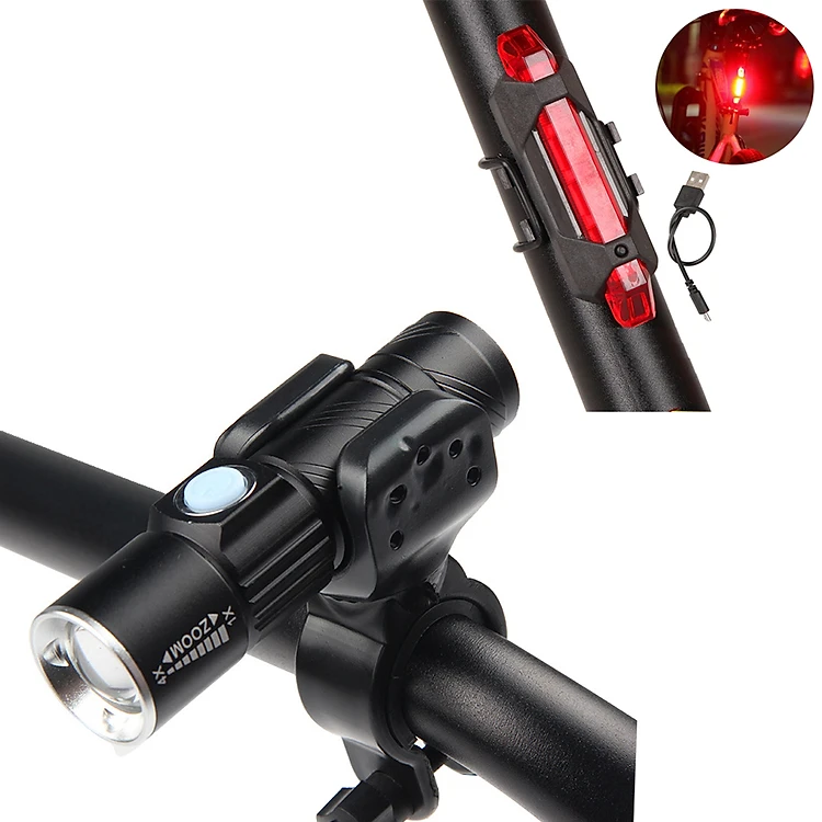 Combo Đèn Pha Xe Đạp LED Q5 Gắn Phía Trước Có Sạc USB Chống Nước Mini Siêu Sáng (Kèm Chân Đế Gắn Đèn Pin) Và Đèn LED Cảnh Báo Sau Xe Đạp 4 chế độ Mai Lee
