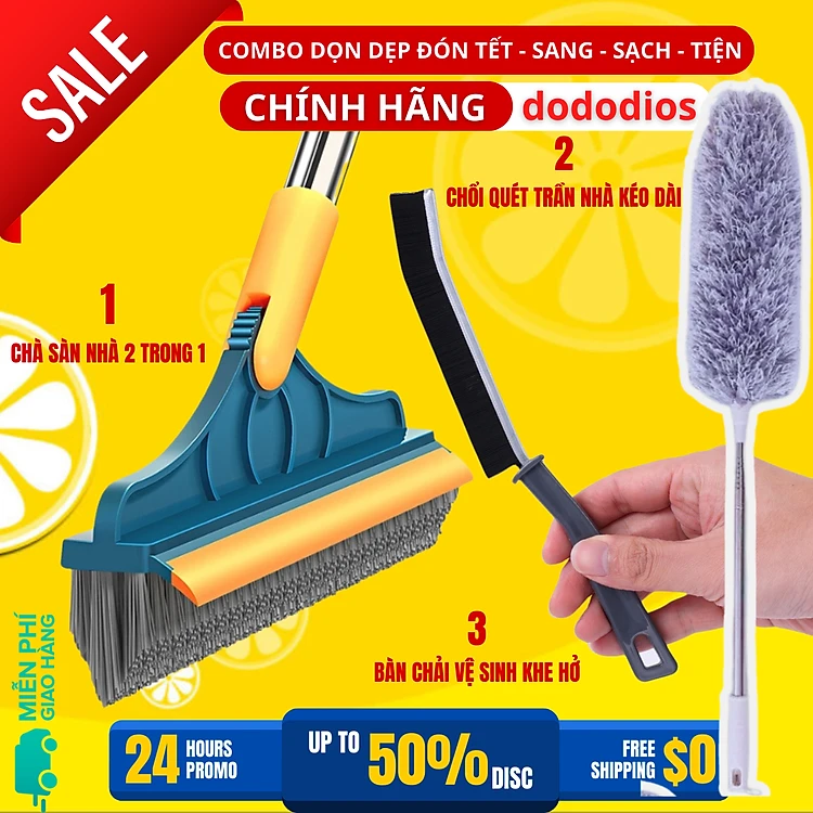 [COMBO DỌN DẸP ĐÓN TẾT] 1 chà sàn nhà tắm + 1 chổi quét trần nhà + 1 bàn chải vệ sinh khe hẹp - Chính hãng dododios