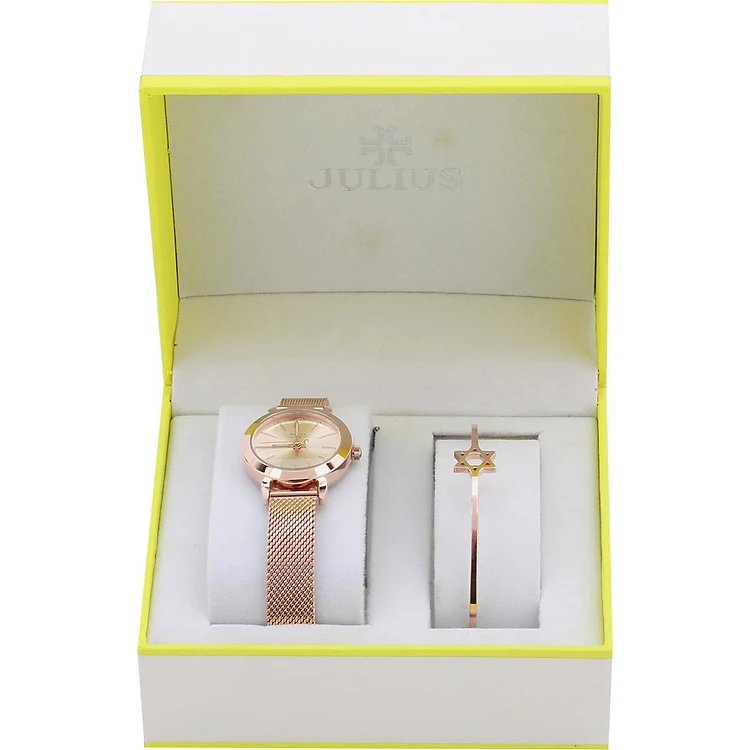 Combo Đồng hồ Nữ Julius Và Lắc Tay Màu Vàng Hồng BC-05