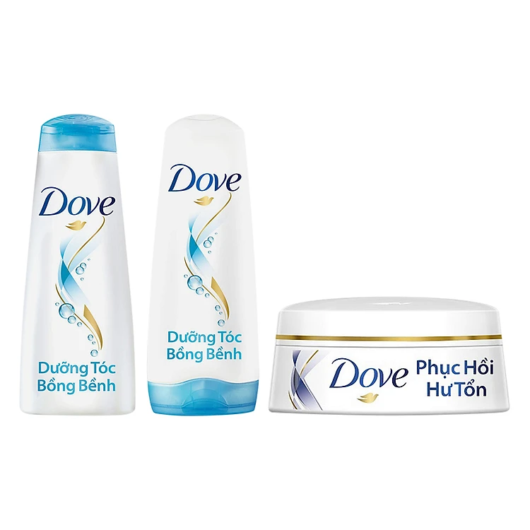 Combo Dove: Dầu Gội Dove Dưỡng Tóc Bồng Bềnh (340g) + Kem Xả Dove Dưỡng Tóc Bồng Bềnh (335g) + Kem Ủ Dove Phục Hồi Tóc Hư Tổn (200ml) giúp phục hồi những hư tổn và mang đến cho bạn một mái tóc bồng bềnh, suôn mượt.